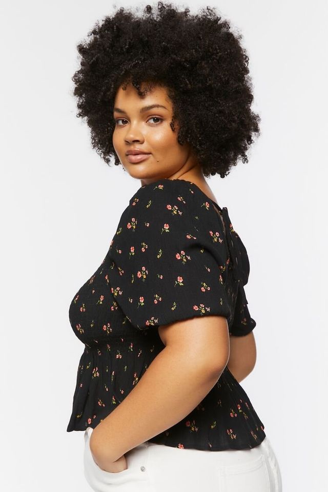 Forever 21 Women S Floral Print Puff Sleeve Top In Black 0x Connecticut Post Mall